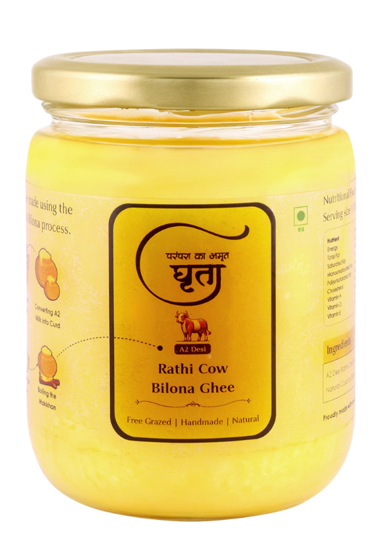 At Ghrta, we believe that ghee is more than just food — it is heritage, medicine, and a way of life. Our journey begins in the villages of Rajasthan, where hardy Rathi cows roam freely on natural pastures. Their milk, naturally rich in A2 protein, becomes the heart of our handcrafted bilona ghee.